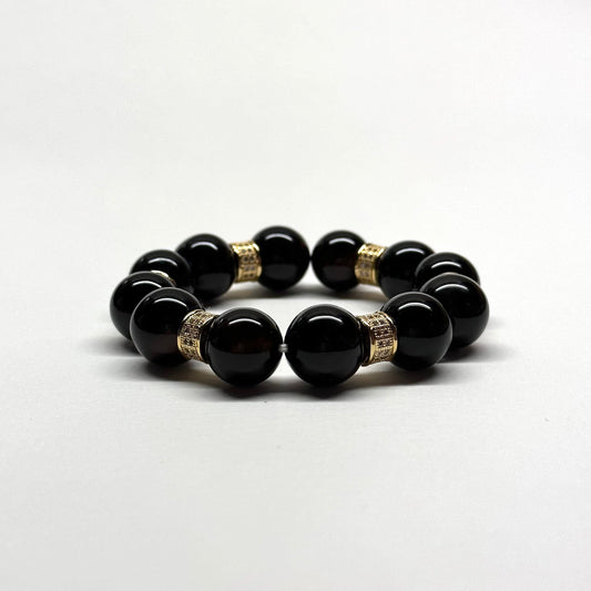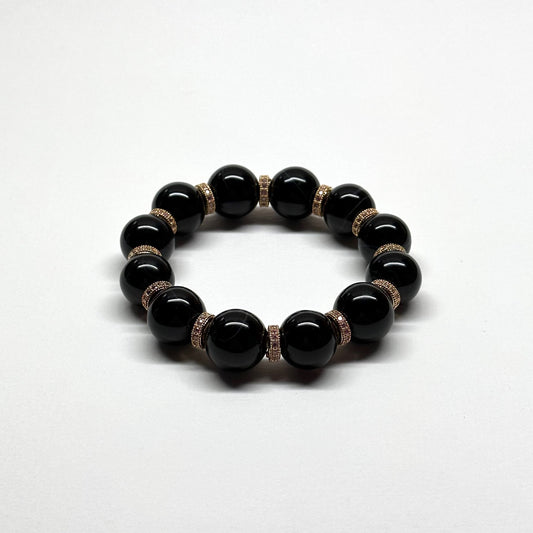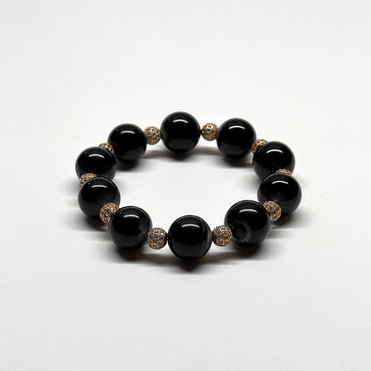 BS53【獅子處女座|8月】黑瑪瑙18K鍍金球手鏈手串 Black Agate Round 18K Gold Plated Accessories Bracelet