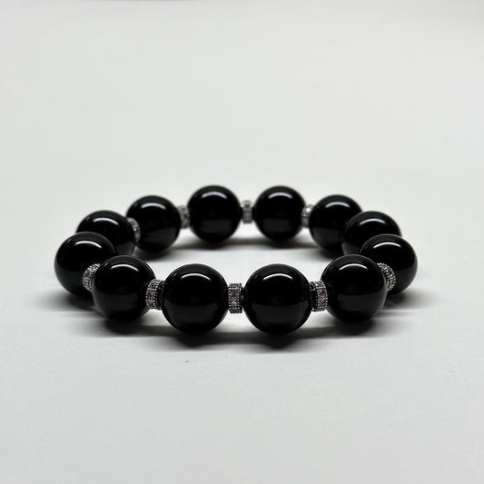 BS43【獅子處女座|8月】黑瑪瑙古典鍍銀手鏈手串 Black Agate Classy Alloy Accessories Bracelet