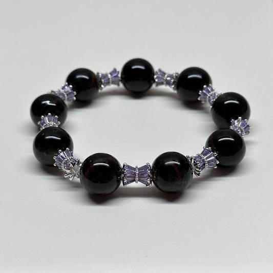 BS44【獅子處女座|8月】黑瑪瑙紫玲瓏鍍銀手鏈手串 Black Agate Purple Alloy Accessories Bracelet