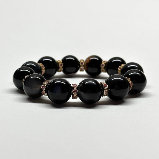 BS25 【獅子處女座|8月】黑瑪瑙18K古典粉鍍金手鏈手串 Black Agate Classic Purple Gold Accessories Bracelet