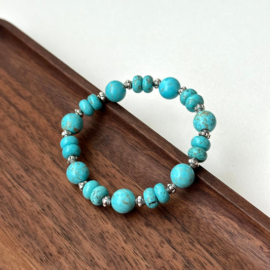 BS182 [Sagittarius Capricorn | December Birthday] Blue Turquoise Vintage Silver-plated Bracelet