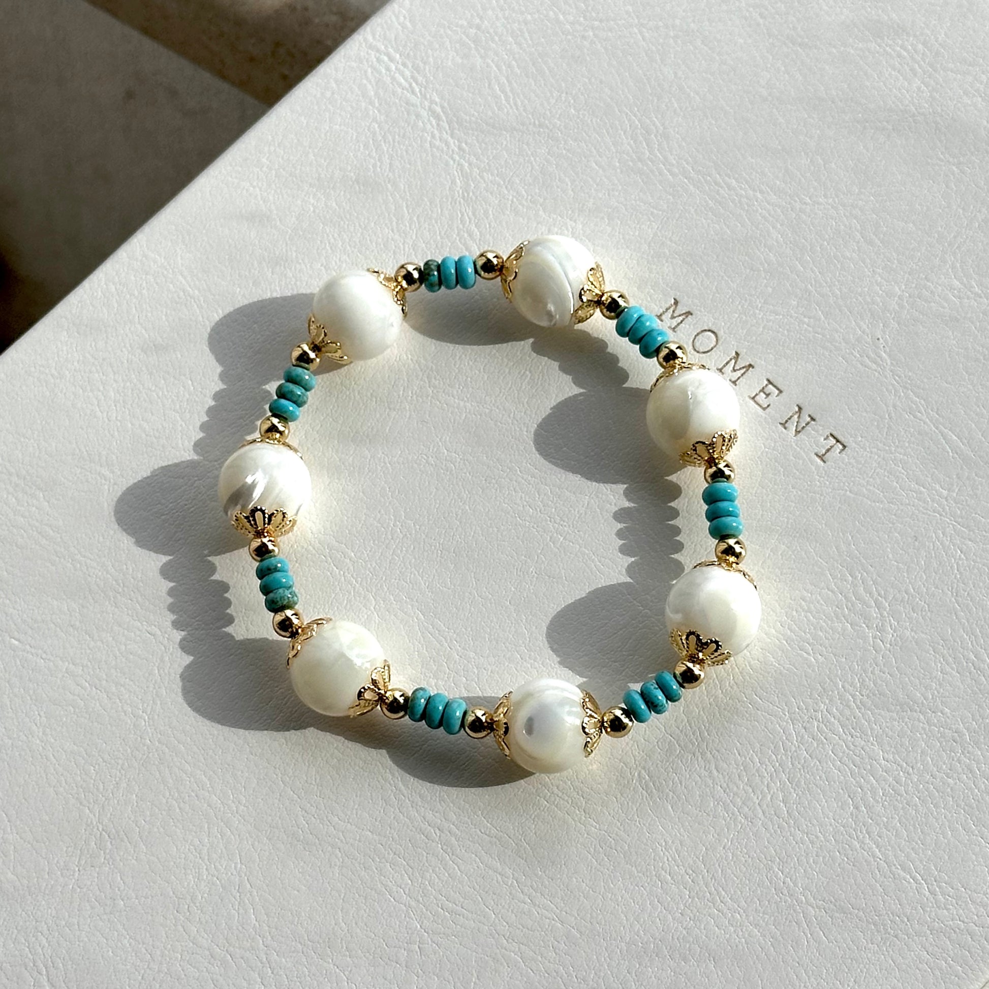 BS79【Roman Manbei】Horse-shell turquoise gold-plated bracelet
