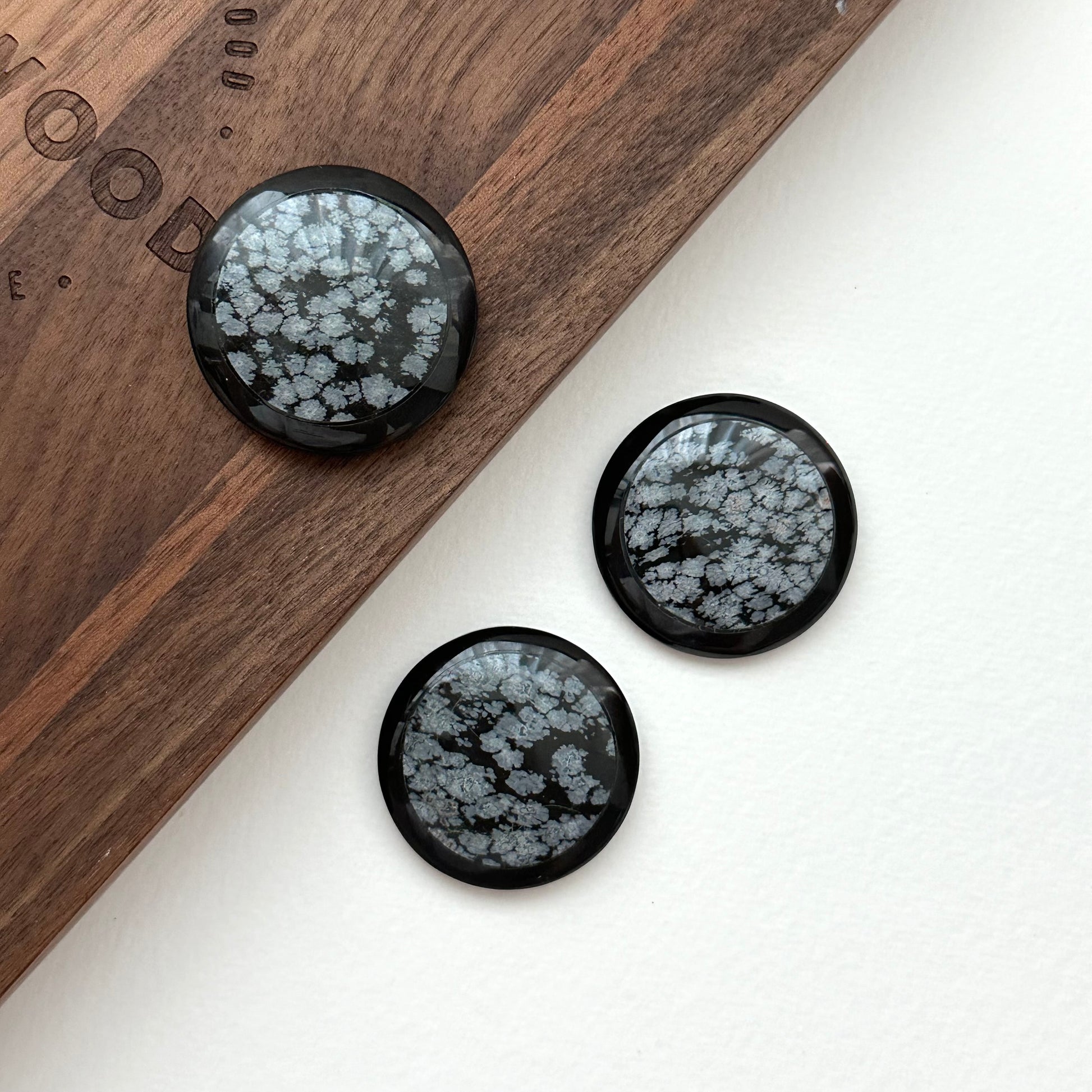 TS10 [Sagittarius Capricorn | December] Snowflake Obsidian Black Jasper Round Blocks for Office or Home Healing Devices