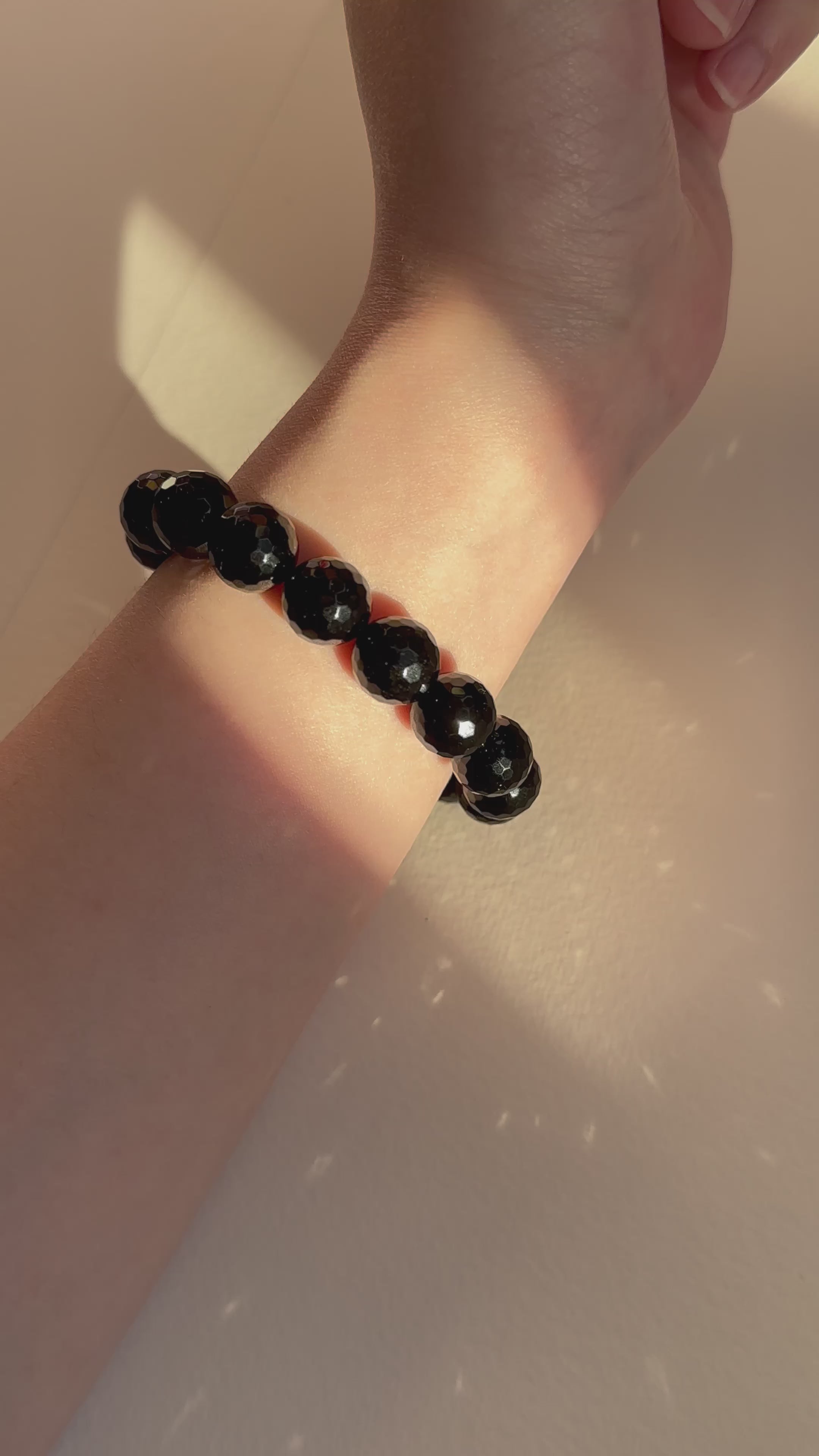 B103【獅子處女座|8月】黑瑪瑙切角純珠手鏈手串