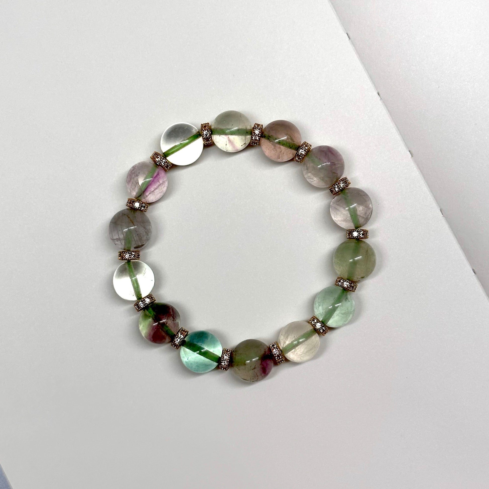 【微瑕疵福利品|一圖一物】螢石18K古典鍍金配飾手鏈手串 BS17